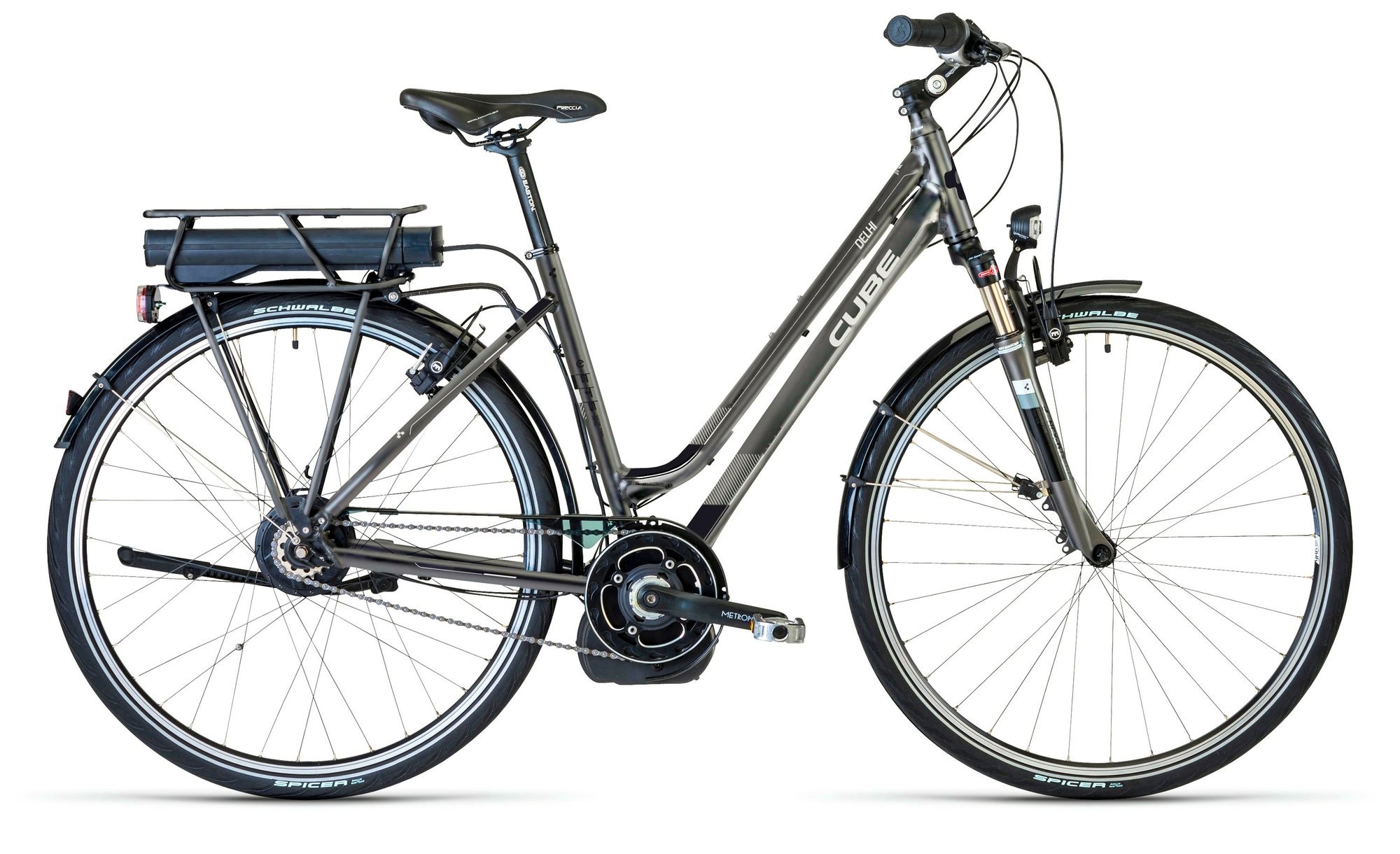 За внешней скромностью — море технологий! Специальная версия нашего известного туристического велосипеда обрела дополнительный источник энергии: батарею емкостью 11 ампер-часов — она изящно примостилась над задним колесом. Электродвигатель расположен под кареткой, благодаря чему заднее колесо совершенно обычное — при необходимости, его можно поменять или отремонтировать в любой мастерской, что важно для туристического байка. Чтобы оставить простоту и ремонтопригодность ободных колес, в качестве тормозов мы использовали мощную ободную гидравлику. Еще одна потрясающая новинка на байке: вариаторная (CVT) втулка NuVinci с бесступенчатым переключением — сверхудобная штука для точного выбора передаточного отношения. Разумеется, наш новый CUBE EPO DELHI оснащен полноразмерными крыльями, светотехникой, мощными гидравлическими тормозами Magura и прочным задним багажником.