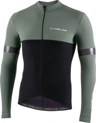 Веломайка с длинными рукавами Nalini New Warm Reflex Jersey, чёрно-зелёная