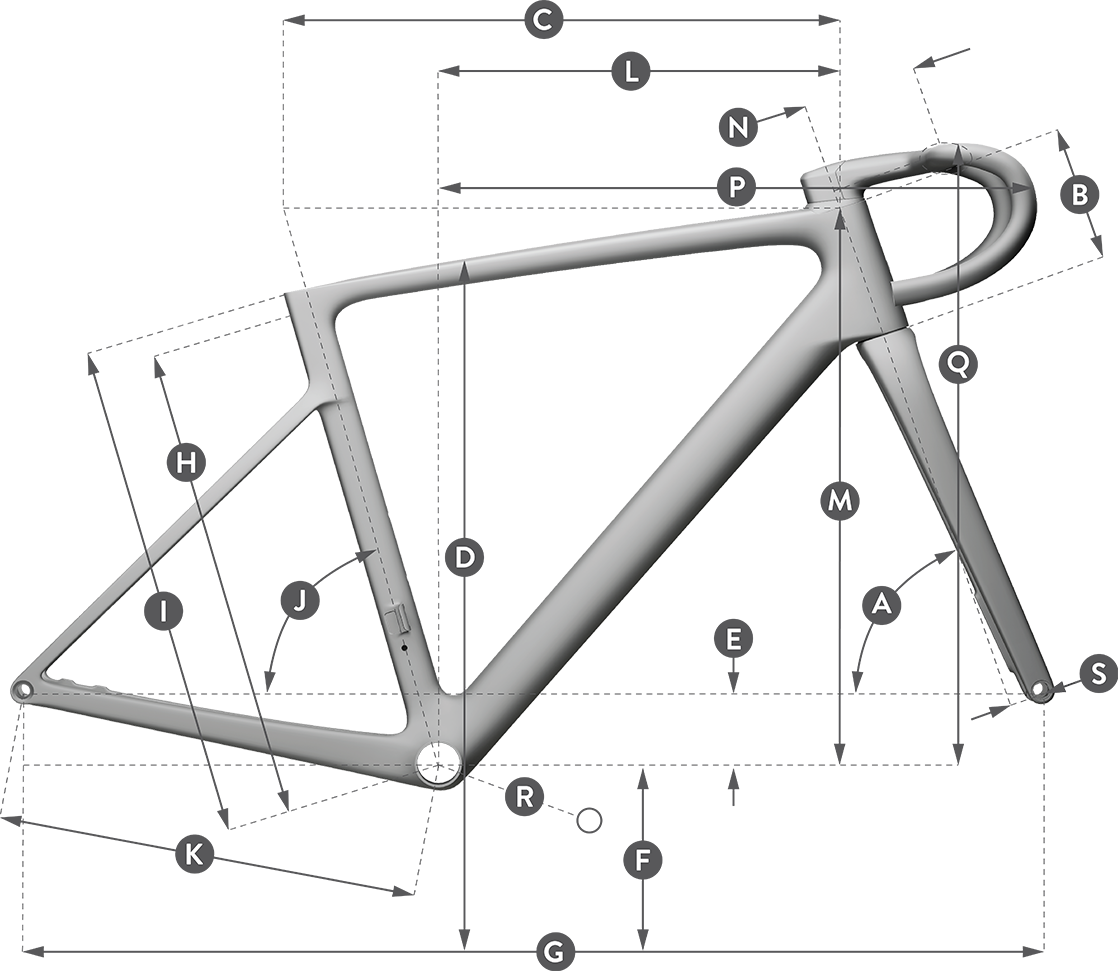 Рама: карбон X-Road Race Mid Modulus, Road Advanced Geometry, Disc Brake Flat Mount, BB86.5, SH dropout, Thru Axle 142x12 мм, Inner cable routing, Di2 compatible, mudguards ready, SB02, TA12x125/165, M12xP1.5x10L/14L, Black