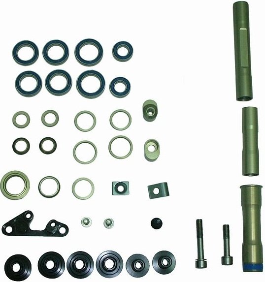 Запасные части для обновления системы подвески SCOTT Genius LT с MY2011. Полный комплект всех необходимых запасных частей для обслуживания заднего треугольника рамы и шарниров. Комплект включает подшипники, болты, шайбы и уплотнители.