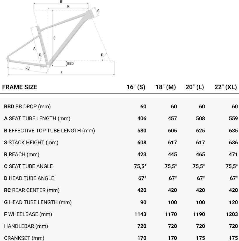 Рама: алюминиевый сплав 6061 T6 Double Butted, Smooth Welding, Sport Geometry, Geometry, Integrated Cable Routing, BB BSA 73 mm, IDK dropout