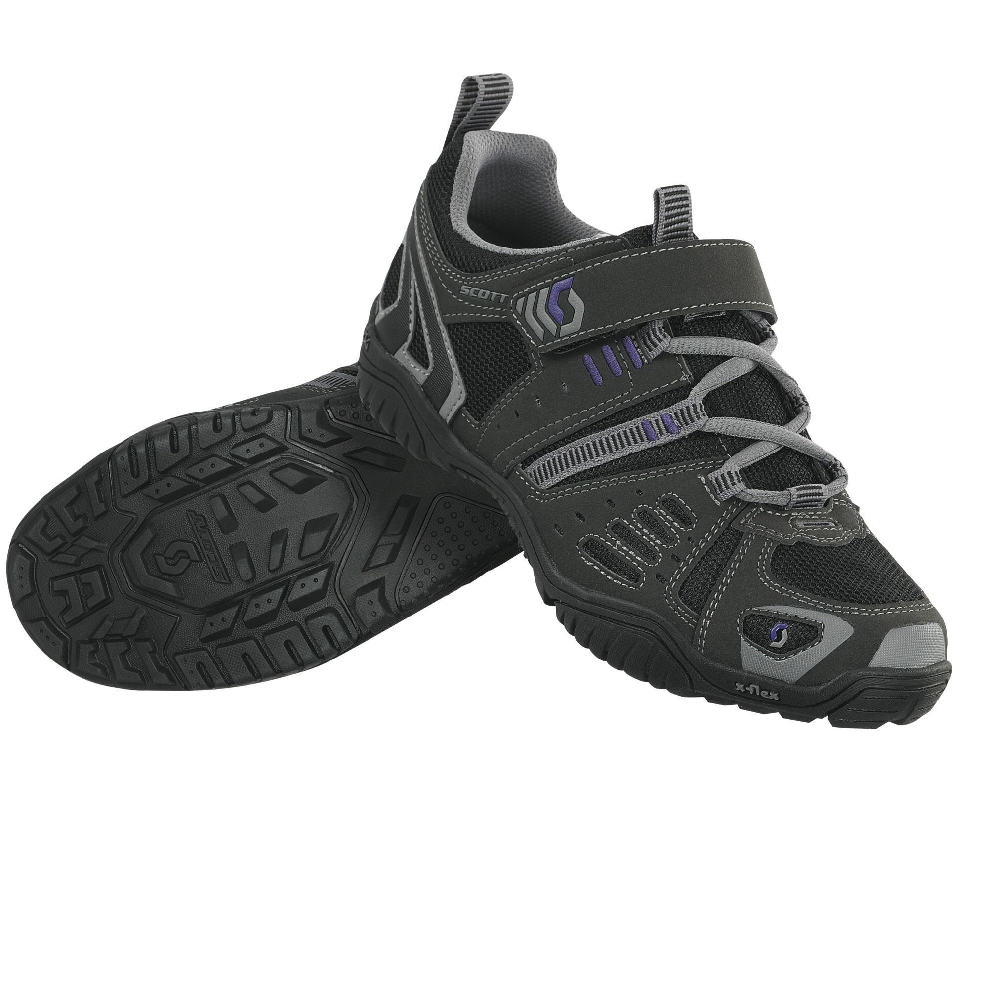 Велообувь женская неконтактная Scott Trail Lady Shoe, серая с синими элементами